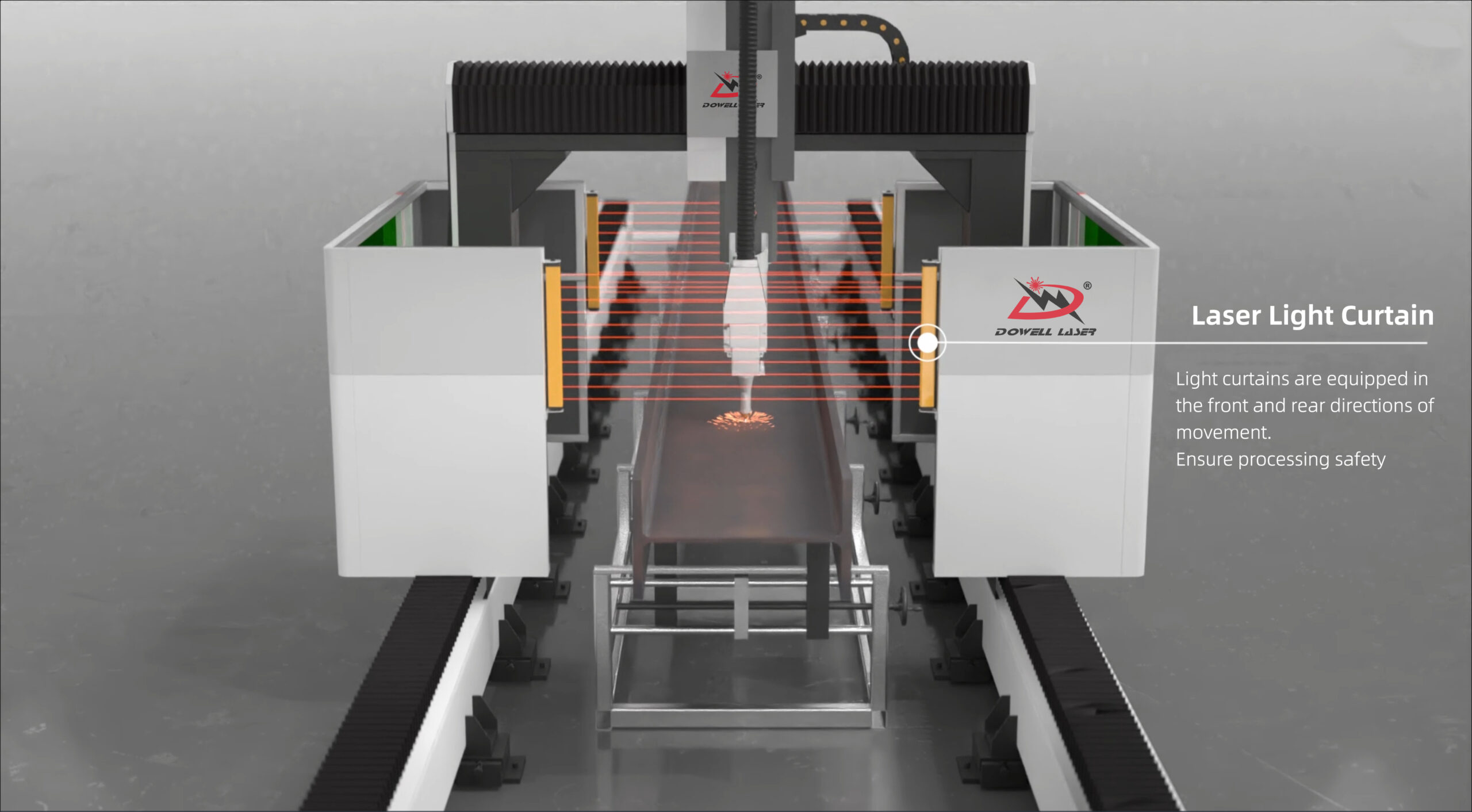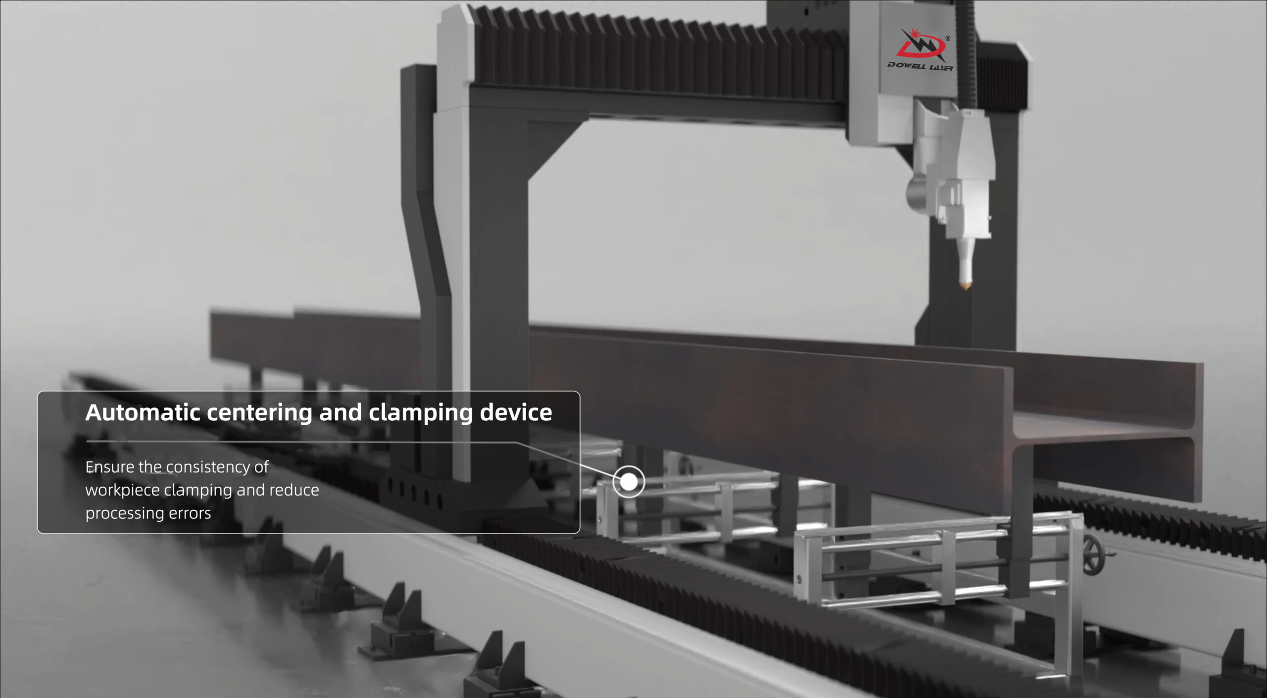 Dowell Laser H-beam Section Laser Cutting Processing Center | Powered by high-power fiber laser, specifically designed for cutting H-beams, I-beams, and other structural steel sections. It delivers burr-free, bevel-free, single-pass cutting. The high-rigidity machine body and precise CNC system ensure high cutting accuracy and stable operation. It is adaptable to various steel section specifications, providing powerful capabilities for efficient cutting operations in the steel structure industry.